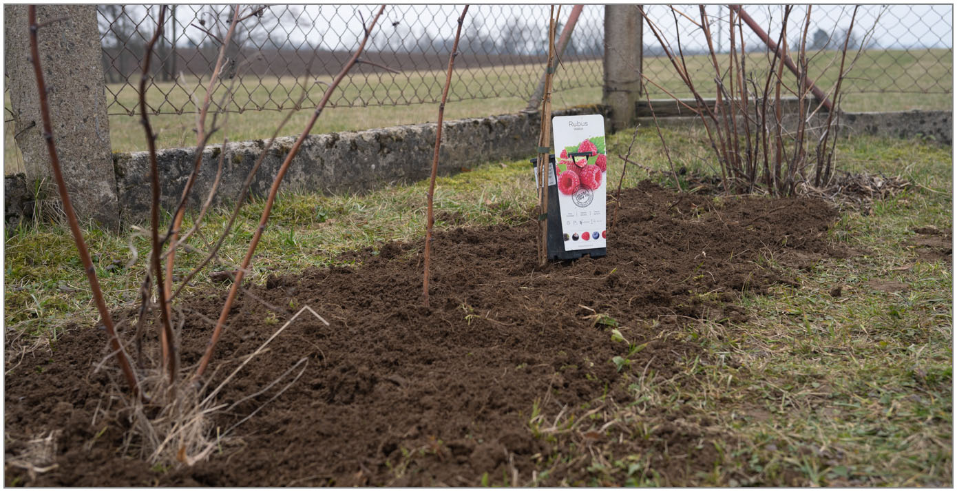 Nový prostor lemují dvě starší rostliny, uprostřed je nově koupený maliník a po jeho stranách dva šlahouny vykoplé z blízkého okolí. Uvidím jestli se šlahouny chytnou a co z nich vyroste. Stejně zajímavé bude, jestli z první keříku, s malými trny, budou maliny nebo ostružiny.