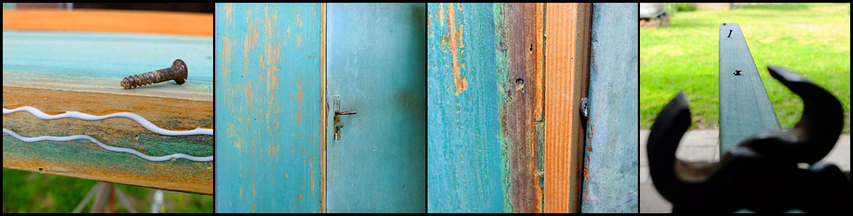 Při odstraňování opryskávající barvy přišel vizuální problém. Doufal jsem, že dveře dostanou jakousi patinu, k dosažení tohoto efektu se ale očividně dochází jinou cestou. Abych sundal veškerou barvu, tak bych potřeboval letlampu a nebo bych musel hoblovat. Ani do jednoho se mi moc nechtělo už proto, že jsem nevěděl, jakou barvu, či kombinaci barev, poté zvolit. Po přetření lakem se pak rozdíl mezi dvěma křídly ještě zvětšil. Po nasazení o sebe půlky ve spodu trochu dřely, to ale celkem rychle vyřešila rašple…