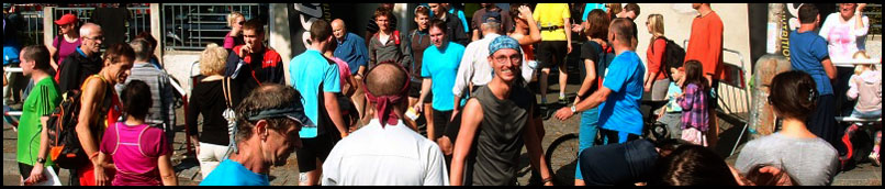 Po odběhu žen jsem dal baťůžek do dodávky, která mi ho převezla do cíle, a začal se protahovat. Loni jsem i trochu pobíhal, to jsem ale letos prakticky vypustil. Chvilku jsem si říkal, že bych se mohl pokusit startovat někde z chumlu. Když jsem viděl, jak tam jsou lidi nahečmaný, tak jsem raději opět volil opožděný start, abych nemusel o nikoho škobrtat. Zatímco loni to bylo tak, že jsem vybíhal jako zapomenutý, tedy že po proběhnutí startem jsem měl posledního běžce pár metrů přede mnou, tak letos mi přišlo, že vybíhám ještě s davem. Startoval jsem totiž “s rozeběhem”, tedy s mezerou asi stovky metrů od stojícího davu po výstřelu a i když jsem běžel pomalu, tak jsem je doběhl ještě než proběhli úplně startem. Ztráta od výstřelu činila oproti loňským 49ti pouze 40 vteřin.