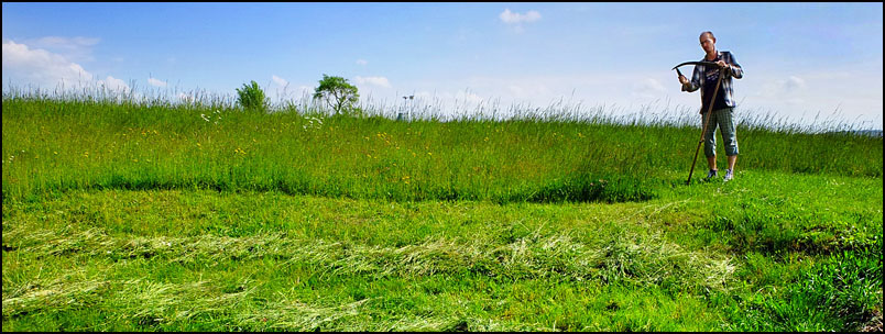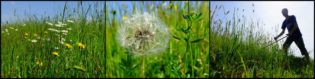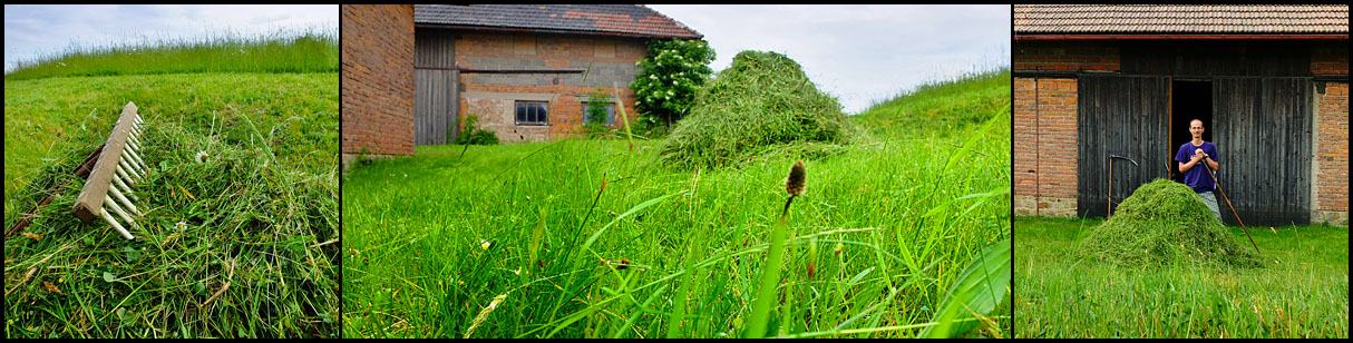 Sekání kosou mám rád. Žádný rámus, jen svist ostří. A při takhle vysoké trávě, je práce i vidět, což je fajn. S pláckem za stodolou jsem začal ve čtvrtek večer a v pátek to dosekl. Při sobotním shrabování jsem ale zjistil, že kosa nazabírala tak daleko jak jsem si myslel a zbyly úzké neposečené řádky. Nezbylo, než opět vytáhnout kosu a vše pěkně doladit. Práce na jedno odpoledne mi tedy zabrala tři dny.