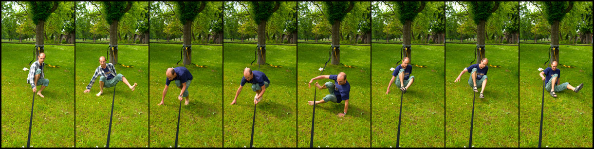 Pro zpestření jsem si také vyzkoušel chození po slackline, nebo lépe “chození” po slackline. Ukázalo se to být ještě těžším než jsem čekal. Nakonec se mi alespoň podařilo držet pár vteřin balanc v sedě. Věřím tomu, že z toho může být pěkná relaxační aktivita, protože jak se člověk soustředí na balanc, tak se dostává trochu do jiného stavu mysli. Bude to chtít ještě hodně tréninku. Překvapilo mne, jak hodně popruh tlačí, ať už do plosek či do zadku. Pro nějaký delší trénink asi nebudou od věci tlusté ponožky nebo nějaké lezečky, protože v sandálech/keckách mi tam ten kontakt zase chyběl.