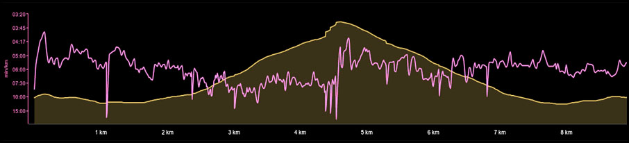 Kopce byly třikrát. Dvakrát k parkovišti mezi Moel Famau a Foel Fenli z nadmořské výšky 80m do 370m na třech kilometrech. Jednou jsem si pak vybral jen to nejprudší stoupání a běhal asi sto metrové úseky nahoru a dolů v pěti opakování. Na běchovické trase nějaké to stoupání také je a tak se tréning snad bude hodit.