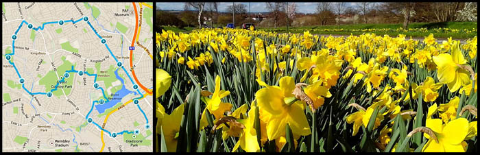 I když jsem cestu opět hnedka ztratil, tak i tak jsem se najednou objevil u břehu. Na plavání to asi nebude, spousta plachetnic a břeh nic moc. Cesta kolem pěkná, ale bohužel to vypadá, že není kolem dokola. Já vyrazil na jistotu směrem ke stadionu do čtvrti Neasden, kde jsem nakonec našel místo, kde už jsem běžel a tak poslední kilometr už byl po známe trase. Celkem to bylo 18km a celkem mne to zmohlo, svádím to hlavně na betonovou džungli. Ač to tak podle fotek nevypadá, tak skoro celou dobu jsem běžel po více či méně rušné ulici.