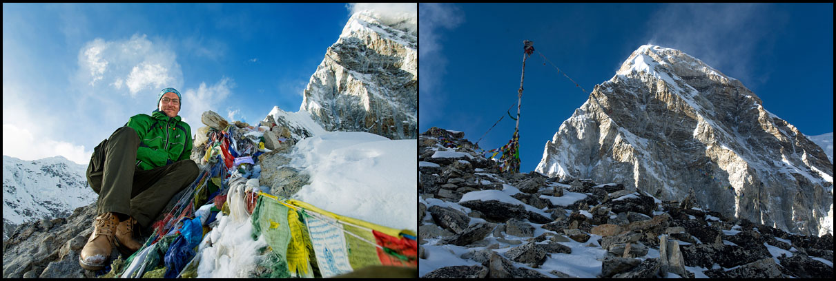 Vrchol Kala Patthar krčící se pod Pumori.