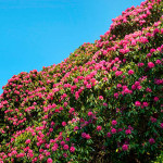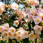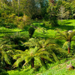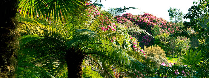 Byl jsem natěšenej na rozkvetlé rodendrony, kterých tu nakonec moc nebylo. Jeden mohutný ale dělal parádu i na desítky metrů daleko. Díky mírnému klimatu Cornwallu a zavětří údolí se tu daří i palmám. Údolí to není rovinaté, ale docela prudce se svažuje k jihozápadu, kde zahrada končí ve vesnici Durgan na břehu řeky Helford.