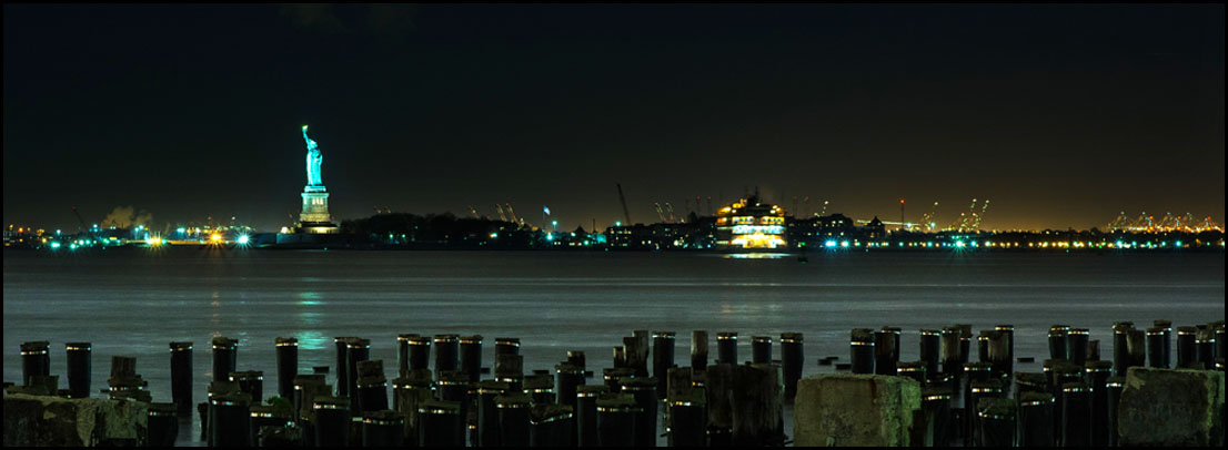 U řeky už ve výhledu na Sochu Svobody nevadila velká osvětlená mola a byl tak volný výhled.