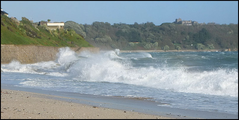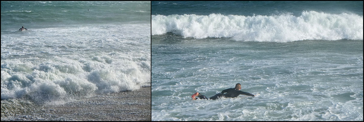 Někdy před dvěma týdny přecházely přes Británii zbytečky hurikánu Maria, který likvidoval pobřeží USA v září a na počasí to téměř nebylo znát. Včera Cornwall chytal okraje exhurikánu Ofélie, který právě trápil Irsko a toho už si nešlo nevšimnout. Kupodivu nepršelo, naopak bylo pěkně slunečno s teplotou ke 20°C, fučelo ale dost. Vyprané povlečení uschlo na šňůře během pár minut. Mně vítr narušil obdenní plavání, ale k moři jsem se beztak vypravil a udělal pár fotek.