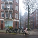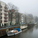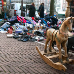 Včera i předevčírem tu bylo slunečno, ale na dnešek bohužel vyšla mlha. Já jsem od nádraží Amstel zamířil podél řeky do centra. I když bylo po deváté ranní, tak všude pěkné ticho. Občas nějaký běžec a hafo kol. Rušná silnice byla o dva bloky dál, ale hluk sem vůbec nedoléhal. To je jeden z hlavních vjemů, který si odtud odnáším – tiché město. Druhým pak byla spousta starších (antik) věcí ke koupi ať už u stánků a nebo v obchodech.