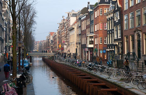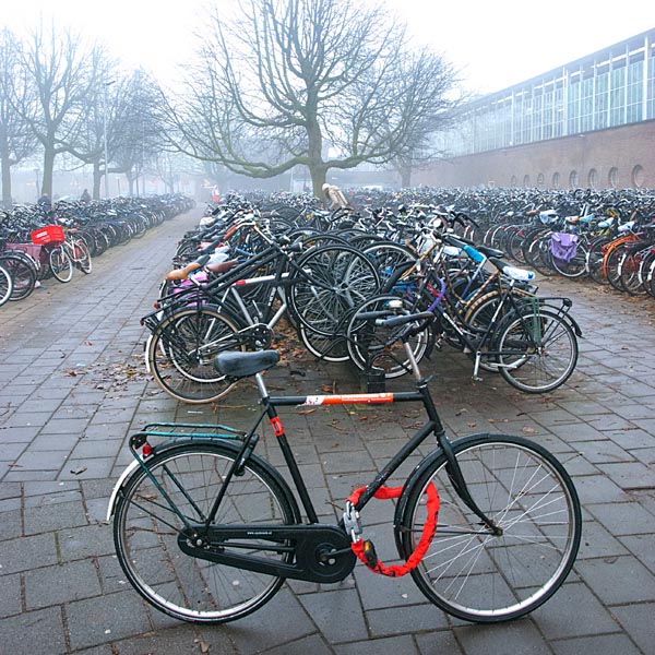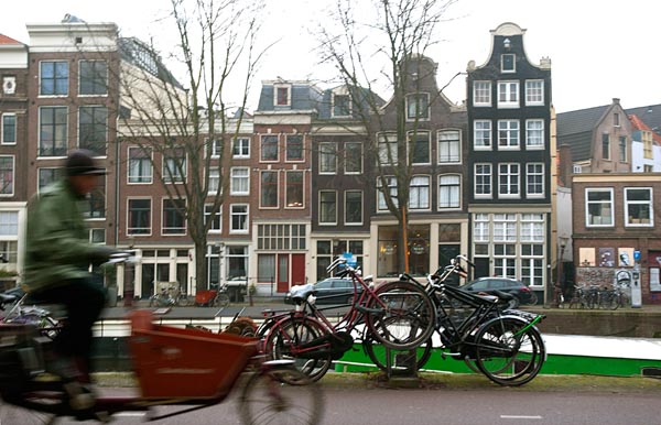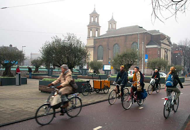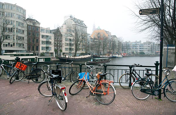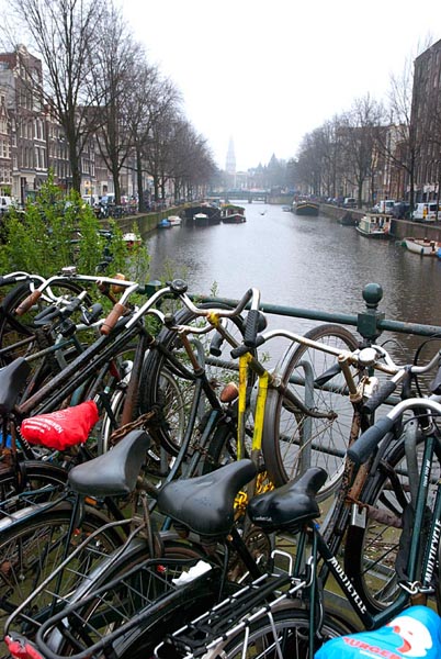 Centrum bylo prakticky bez aut, většina motorové dopravy byla soustředěna do pár hlavních ulic, vše ostatní patřilo cyklistům potažmo pěším. Kola tu byla všechna klasická s vlaštovkama a jedoucí lidi tak vypadali, díky vzpřímenému sezení, pěkně elegantně. Kola byla bez převodů a tak cyklisté vždy profrčeli celkem rychle. Díky speciálním pruhům to ani nedělalo moc problémů. Pokud pruh nebyl, tak pomohl zvonek. Díky tomu, že je Amsterdam pro cyklisty bezpečný, neváhají lidé cestovat na kole i s naloženýma dětma. Klasickej starej zvonek byl snad na všech řidítkách, po setmění nebylo jediné kolo bez osvětlení.