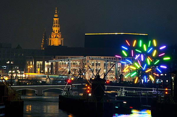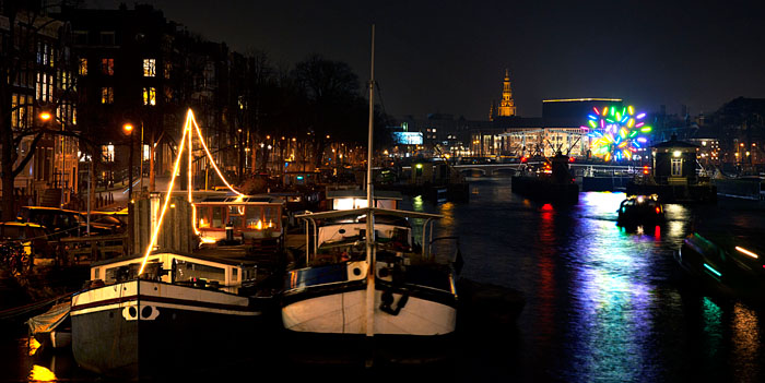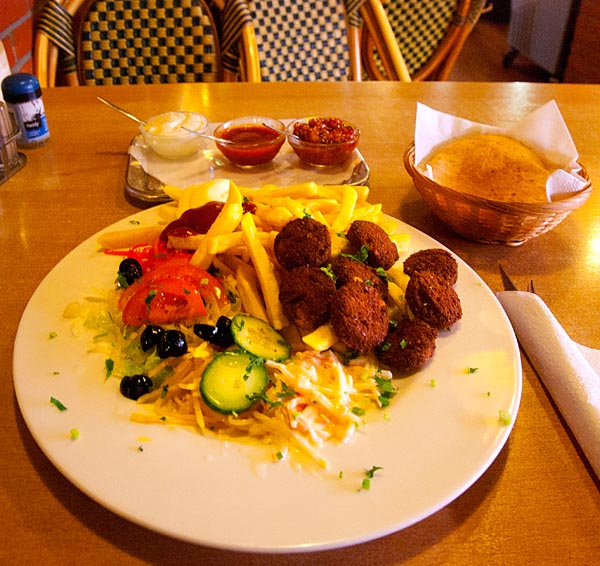 Necelou hodinku před tím, než se začalo smrákat se obloha vyjasnila a na ulice se tak dostalo i sluníčko. Za šera už jsem moc nefotil a soustředil se spíš na zorientování kde jsem. Velmi nápomocni k uvědomělému pohybu ve správném směru jsou kanály. Stačilo zjistit podél kterého jdu a asi po hodině jsem došel k řece Amstel a odtud podél ní opět k nádraží. Stále mi zbývali dvě hodiny do odjezdu a tak jsem si ještě zašel na falafel. Ten bodnul, za celý den jsem totiž snědl jen croisant a bratwurst.