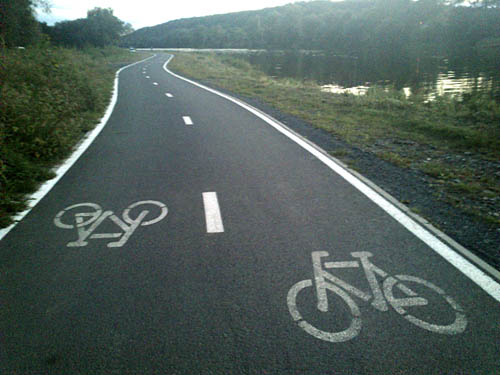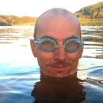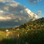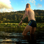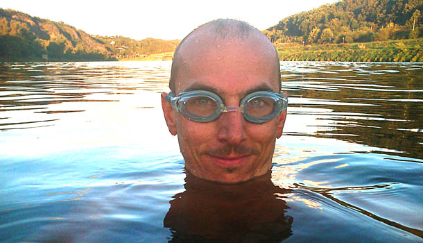 Kameny jsou velké a celkem ostré, takže vlez není moc pohodlný. Voda má krásných devatenáct, což je možná i o trošku víc než vzduch. Přeplaváno mám už snad za dvě minuty, jsem ale překvapen jak mne stáhl proud. Cesta zpátky se protahuje právě o ten kus proti proudu. Po zbytek času už plavu jen při břehu, povětšinou proti. Při obrátce jsem pak vždy překvapen jak rychle to najednou jede. Celkem si plavu dvacet minut a když vylézám z vody je slunce už za obzorem. Na břehu se vyrojila spousta mušek a tak rychle mažu zpátky na cestu.