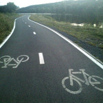 Kilometr se vracím k rozcestníku Pod Klecánským hájem a odtud podél vody po červené značce až k Drahanskému údolí. Minulý rok tu ještě byla kamenitá cesta a dnes se tu vine nová cyklostezka. Po žluté vybíhám Drahanským údolím až do Čimic. Tady jsem chtěl vlézt do autobusu a zbytek dojet, ten mi ale pře nosem ujel a tak jsem pokračoval dál.