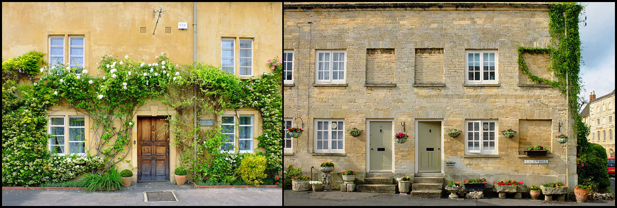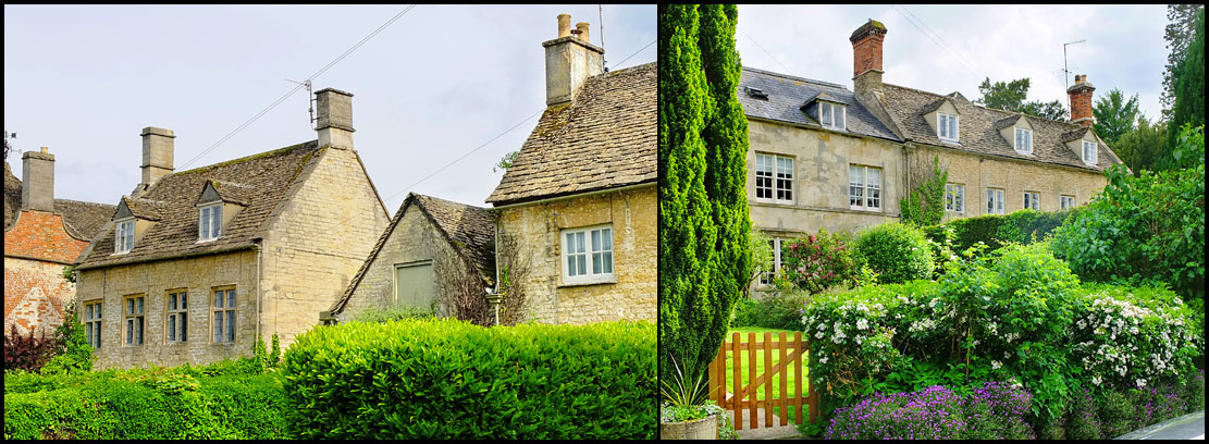 U domku před samotným parkem zaujala kamenná brána, u druhého, který už byl v areálu, pak modrá kvítka.