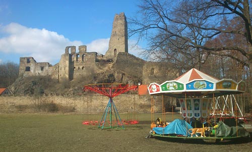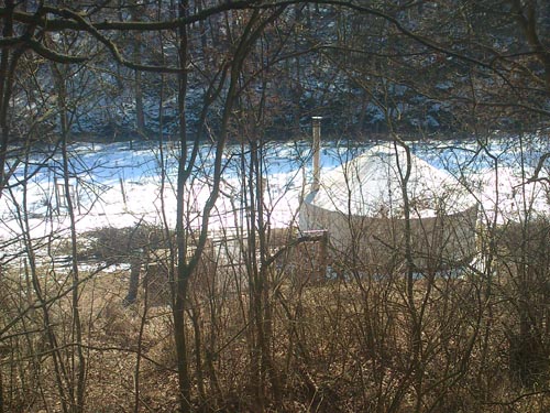Prvním Tescobusem dojíždím na Kobylisy a odtud 370kou do Kralup. V Kralupech mám první a naštěstí i poslední navigační problémy, po čtvrt hodince už jsem ale na správné trase směr Okoř. V údolí Zákolánského potoka bylo místy dost rozbředlého sněhu a bahna, takže postup byl pomalejší s pár úseky kde to nešlo jinak než chůzí.