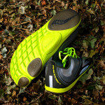 Prstovou část mají širší než Inovejty, řekl bych že jsou stejně široké jako Viva. Svršek je z nylonu a na dotyk je tak nějak zvláštně měkký, jakoby houbový, přitom ale dost tenký. Asi z důvodu ochrany před roztržením jsou přes něj vedeny plastové (jakoby izolepové) proužky. Podrážka je oproti mým předešlým botám tužší, zdá se mi ale ohebnější než u vrácených Merrelek. Zaplatil jsem za ně 47 liber, tedy necelých pátnáctset.