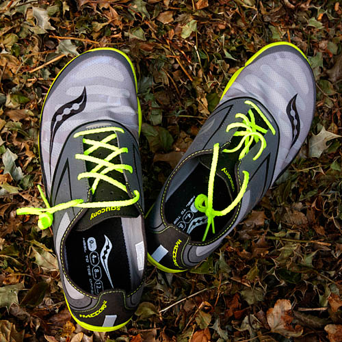 Po třech a půl měsících nastal čas opět koupit běžecké boty. V Inovejtech je už totiž dva týdny díra a tak se po cestách s kamínky běhá celkem nepříjemně. Nevydržely tedy ani 800km takže 1km stále vychází na dvě koruny. Na wiggle.co.uk jsem objednal MerrellTrailGlove ve velikosti 11 (46), tedy stejné jako Inov-8. Když jsem je vybavil tak jsem zjistil, že mě tlačí na palci a tak jsem je poslal zdarma zpátky a vybral místo nich SauconyHattori ve velikosti 11,5.